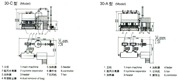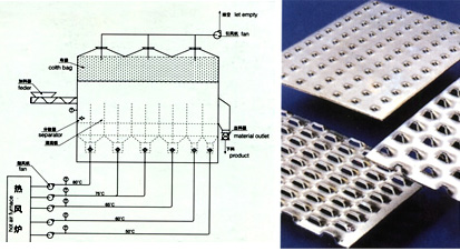 原理: 洁净的热风经阀板分配进入床体内;从加料器进入的湿物料被热风形成沸腾状态。由于热风与物料广泛接触;增强了传热传质的过程;因此在较短时间内就可干燥。从床体的一端进入,经过几十秒至几分钟的沸腾干燥,自动从床体另一端流出。本设备一般进行负压操作。